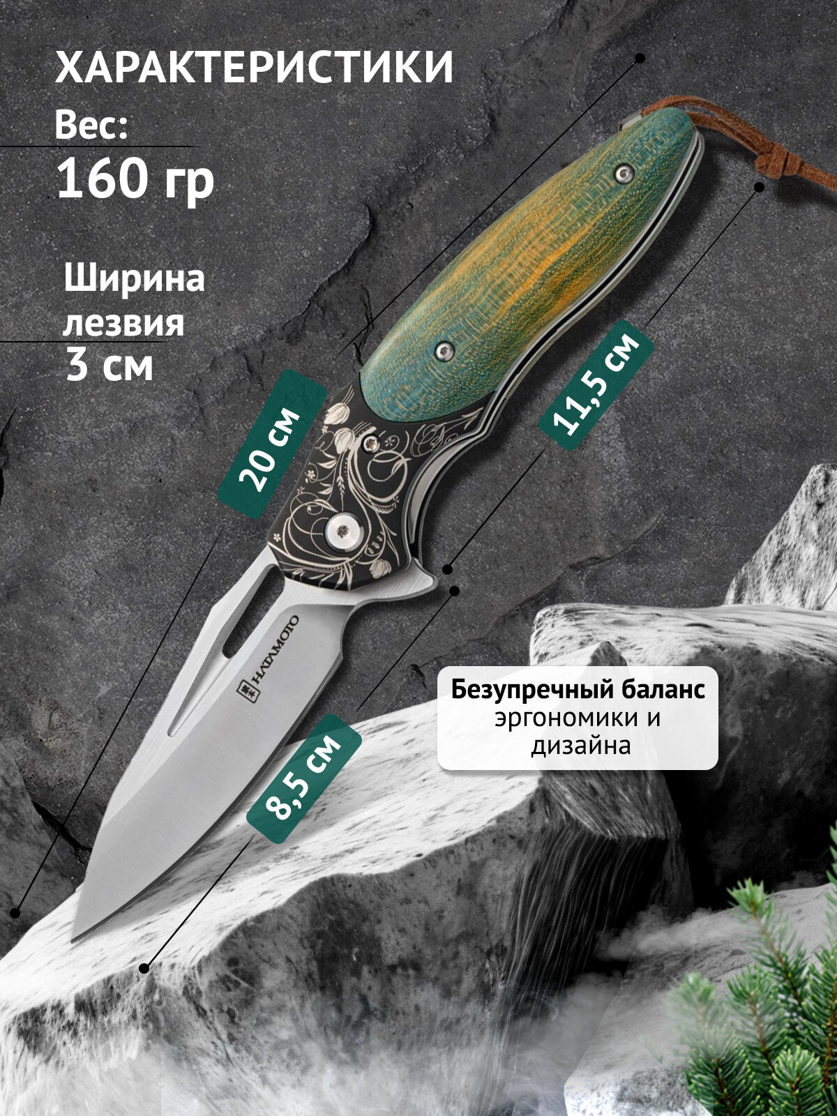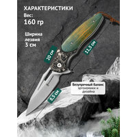 Вес и баланс: Вес ножа составляет всего 160 грамм – идеальный баланс между надежностью и удобством повседневного ношения. Вы почувствуете, как нож удобно лежит в руке, обеспечивая превосходный контроль и комфорт даже при длительном использовании.