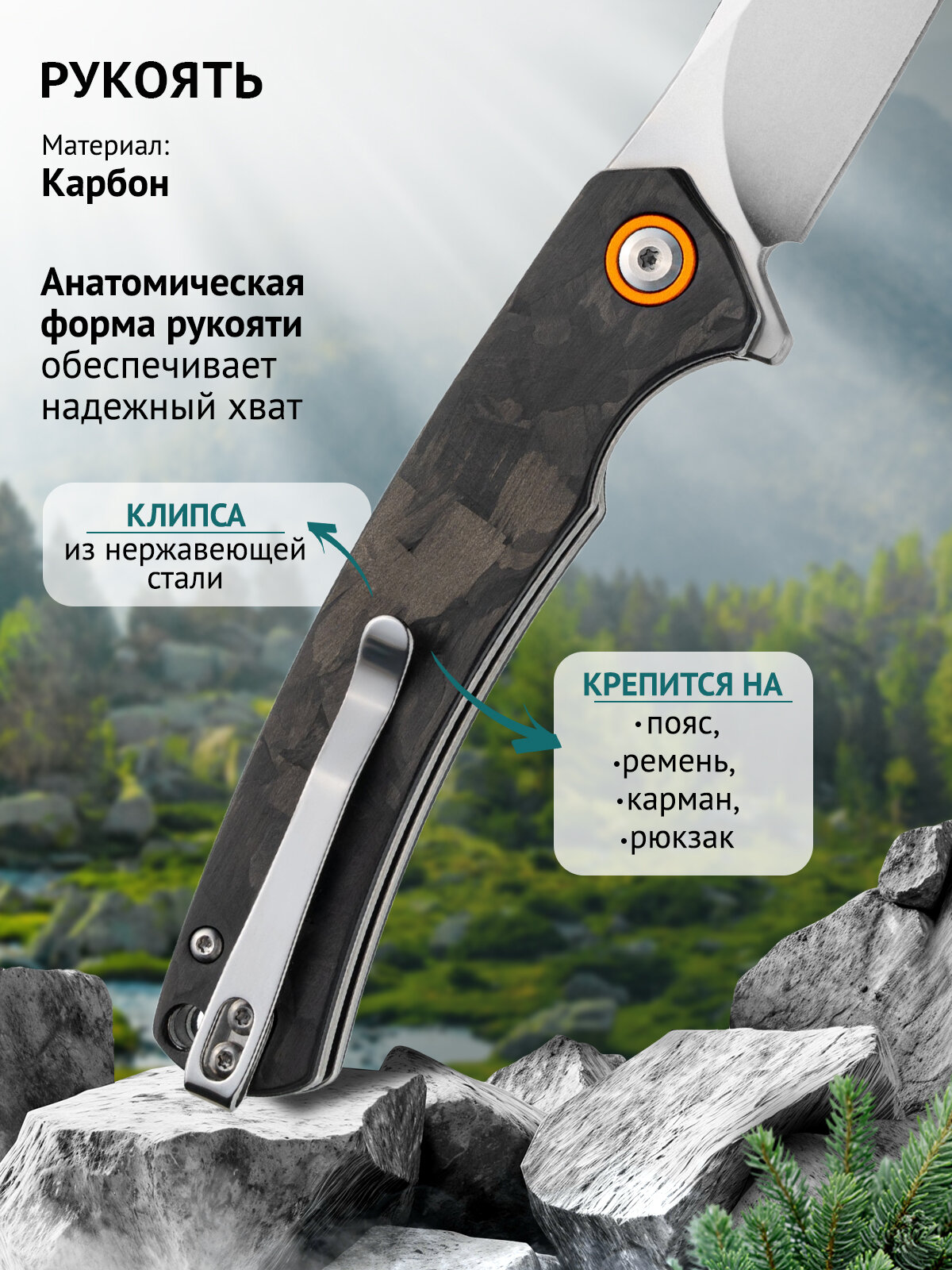 возможность использования одной рукой, клипса для кармана
