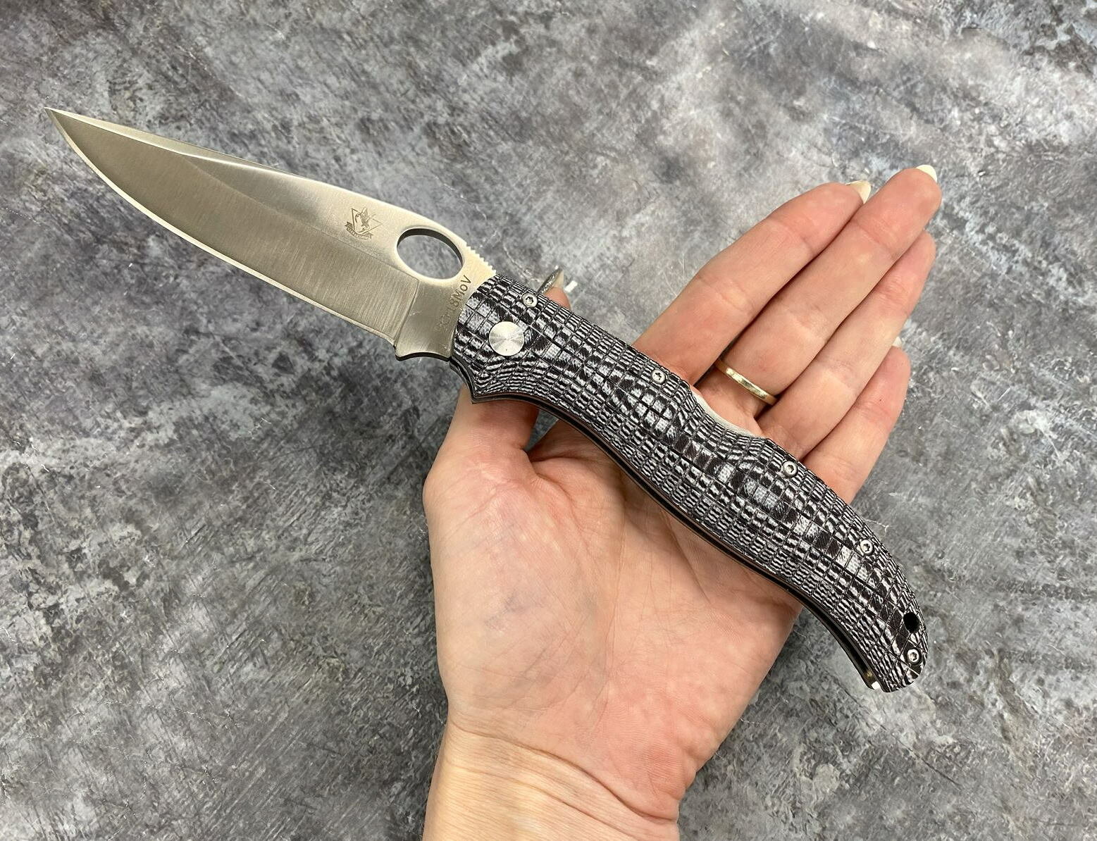 Общая длина: 235 мм Длина клинка: 100 мм Толщина обуха: 4 мм Материал клинка: 9Cr18MoV Материал рукояти: G-10 Производитель: Steelclaw, Китай Вес: 199 г Тип замка: Back lock