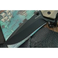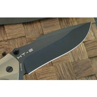 Туристической нож «HT-2 STONEWASH» (Эйч Ти 2 Стоунвош) компании MR.BLADE (Мистер Блейд) сочетает клинок от ножа-скинера и рукоять от городского тактического ножа. Это позволяет использовать нож в городских условиях и в дикой природе. Благодаря рифленой рукояти, вы будете уверенно перехватывать нож в процессе работы. Клинок с острым кончиком и плавным подъемом лезвия рассчитан на работу по твердым и мягким материалам. Ширина обуха 4 миллиметра позволяет использовать нож, как «микролом». Для открывания ножа используется шпенек или плавник-флиппер.