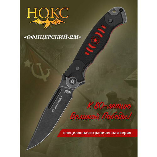 Этот нож выпущен ограниченной серией специально к празднику 80- летия Великой Победы! Складной нож «Офицерский-2М», модель 320 от компании нокс - универсальный тактик. Нож относится к серии "T", самой современной и технологичной серии компании. Клинок из специальной ножевой стали VG10 прекрасно режет, эффективно колет и с легкостью открывается двумя способами - при помощи флиппера, а также двустороннего пина. Осевой узел ножа собран на подшипниках, благодаря чему клинок плавно открывается одним движением. Рукоять с объемными накладками из G10 сочетает удобство и прочность, а стальная клипса позволяет легко зафиксировать нож в кармане или на рюкзаке. «Офицерский-2М» - надёжно послужит в любой ситуации. Дизайн- А. Бирюков. Отличный выбор и для себя, и для подарка.