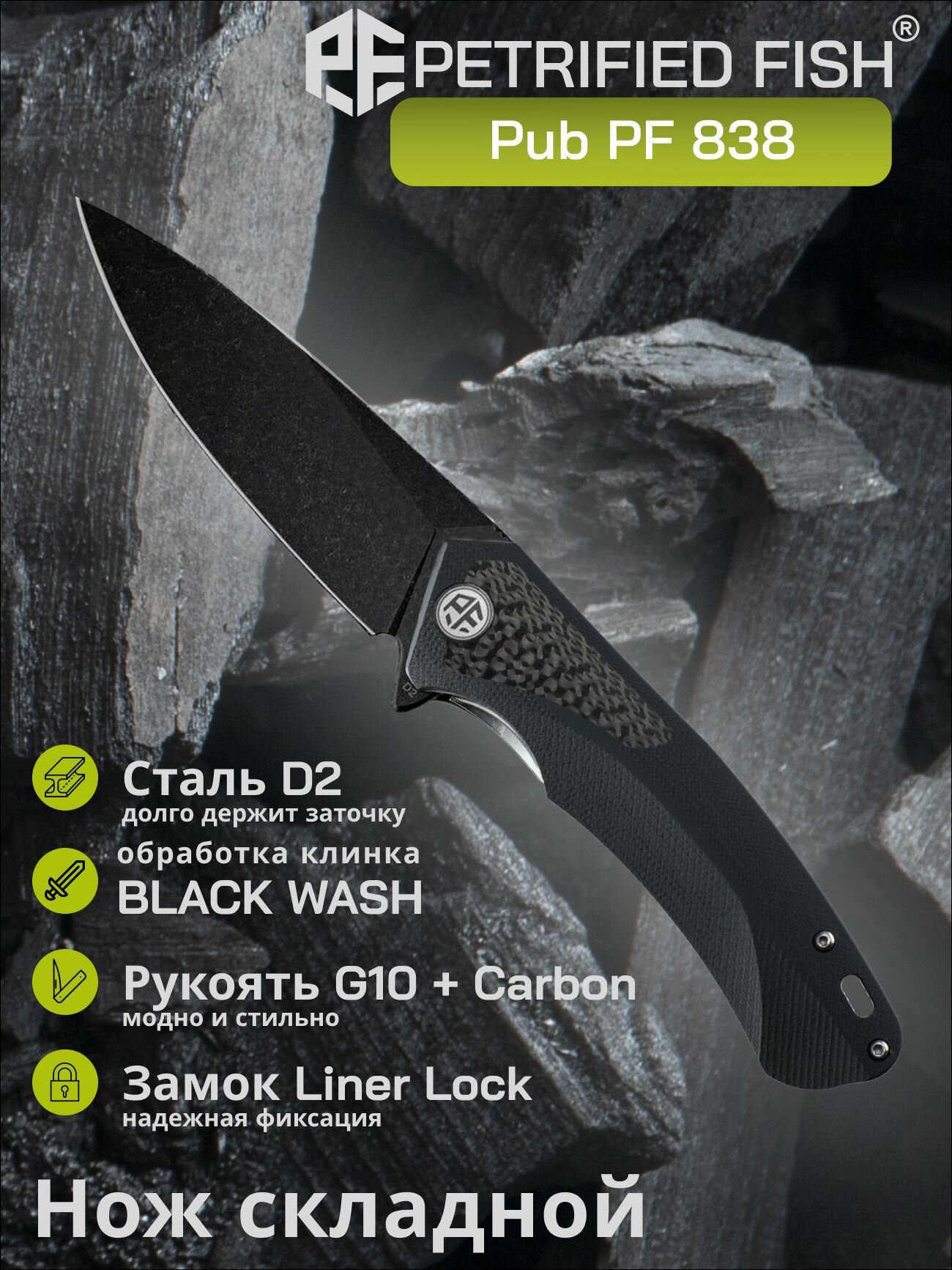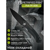 Складной нож Petrified Fish Pub PF838 blackwash (PF838CDW), сталь D2, рукоять Black G10/CF