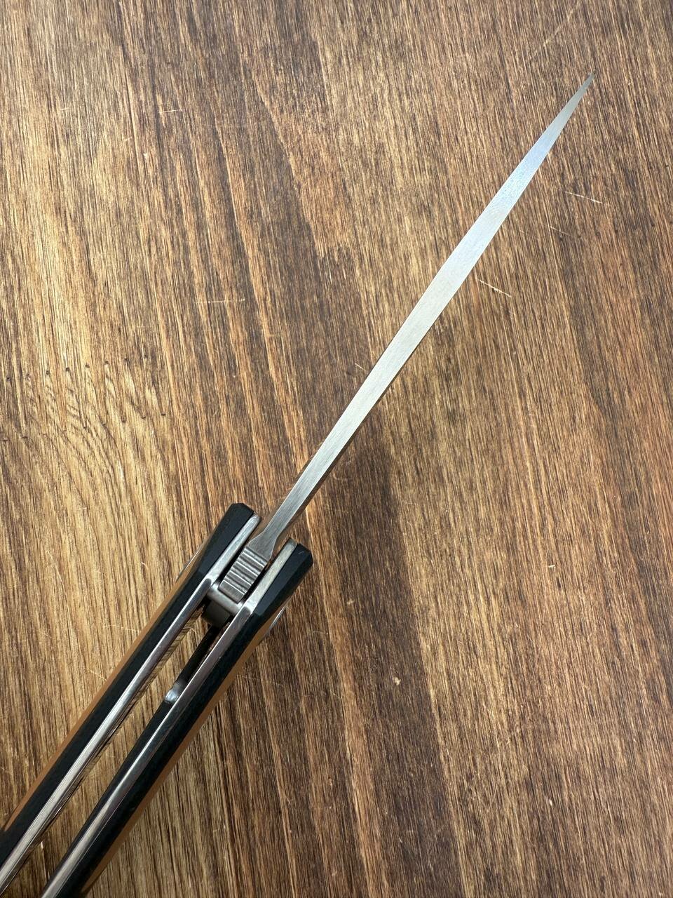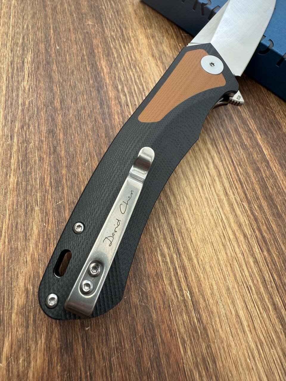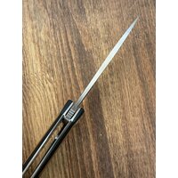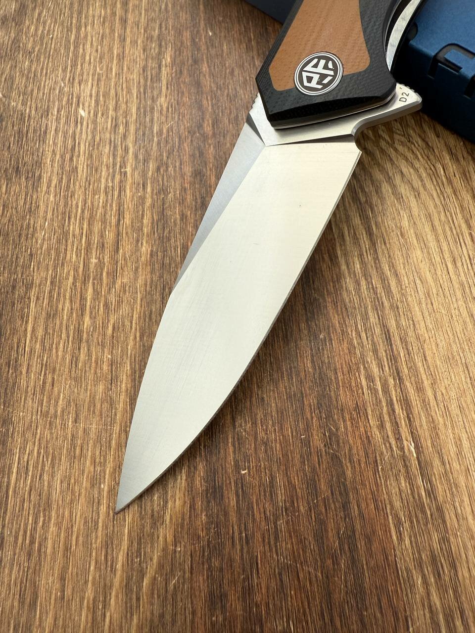 Характеристики: Модель: PF838 Общая длина: 220 мм Длина клинка: 95 мм Толщина обуха: 3,9 мм Ширина клинка: 29 мм Марка стали: D2 Обработка лезвия: Satin finish Материал рукояти: G10 Твердость клинка: 59-60 HRC Система: Шарикоподшипниковая система Вес: 167 гр