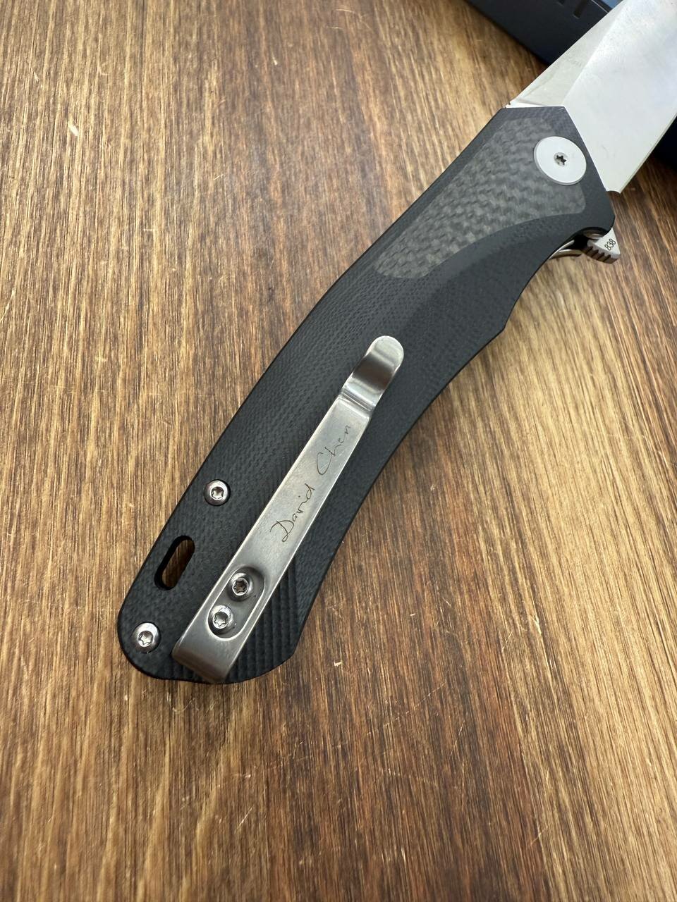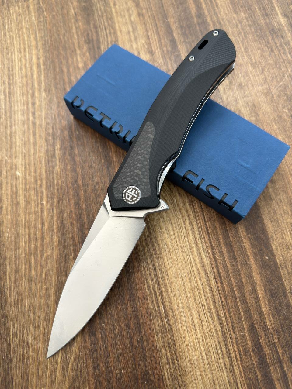 Складной нож Petrified Fish Pub PF838 (PF838CS), сталь D2 Satin, рукоять Black G10/CF