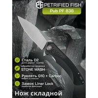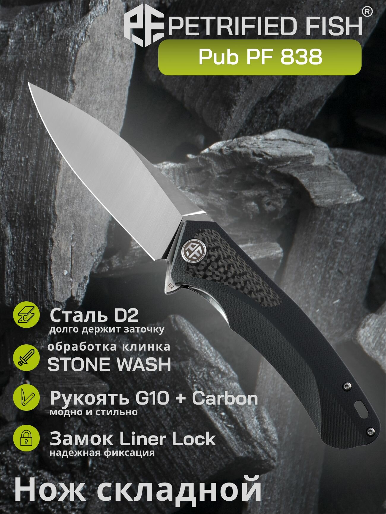 Складной нож Petrified Fish Pub PF838 (PF838CW), сталь D2 Stonewash, рукоять G10/CF Black