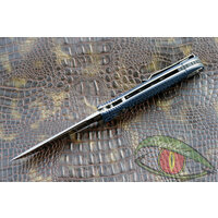 Штифт замка заходит в вырез в пяте клинка и фиксирует клинок. Такой замок является разновидностью Axis-lock.