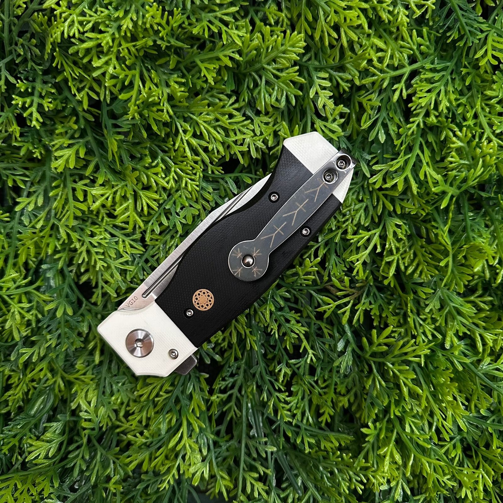 Марка стали: Сталь VG-10 Твёрдость: HRC60-61 Длина общая: 200мм Длина клинка: 87мм Ширина клинка наибольшая: 30мм Толщина обуха: 3.5мм Вес: 172гр Материал рукояти: G10 Механизм открытия: подшипник Производитель: Reptilian