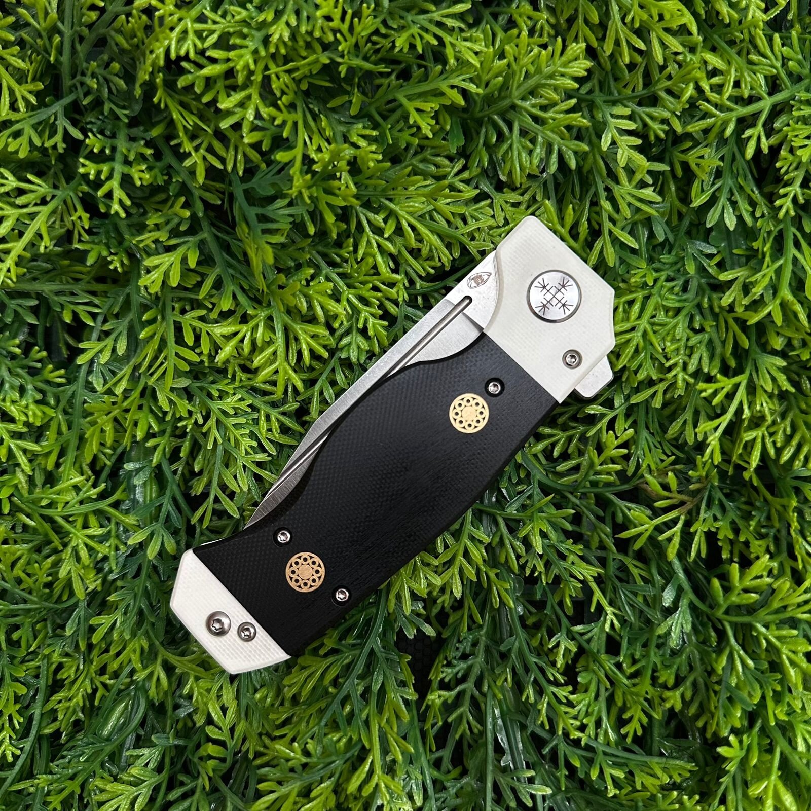 Рукоять ножа выполнена из стеклотекстолита G10. Этот материал обладает высокой прочностью и устойчивостью к износу, а также приятен на ощупь.