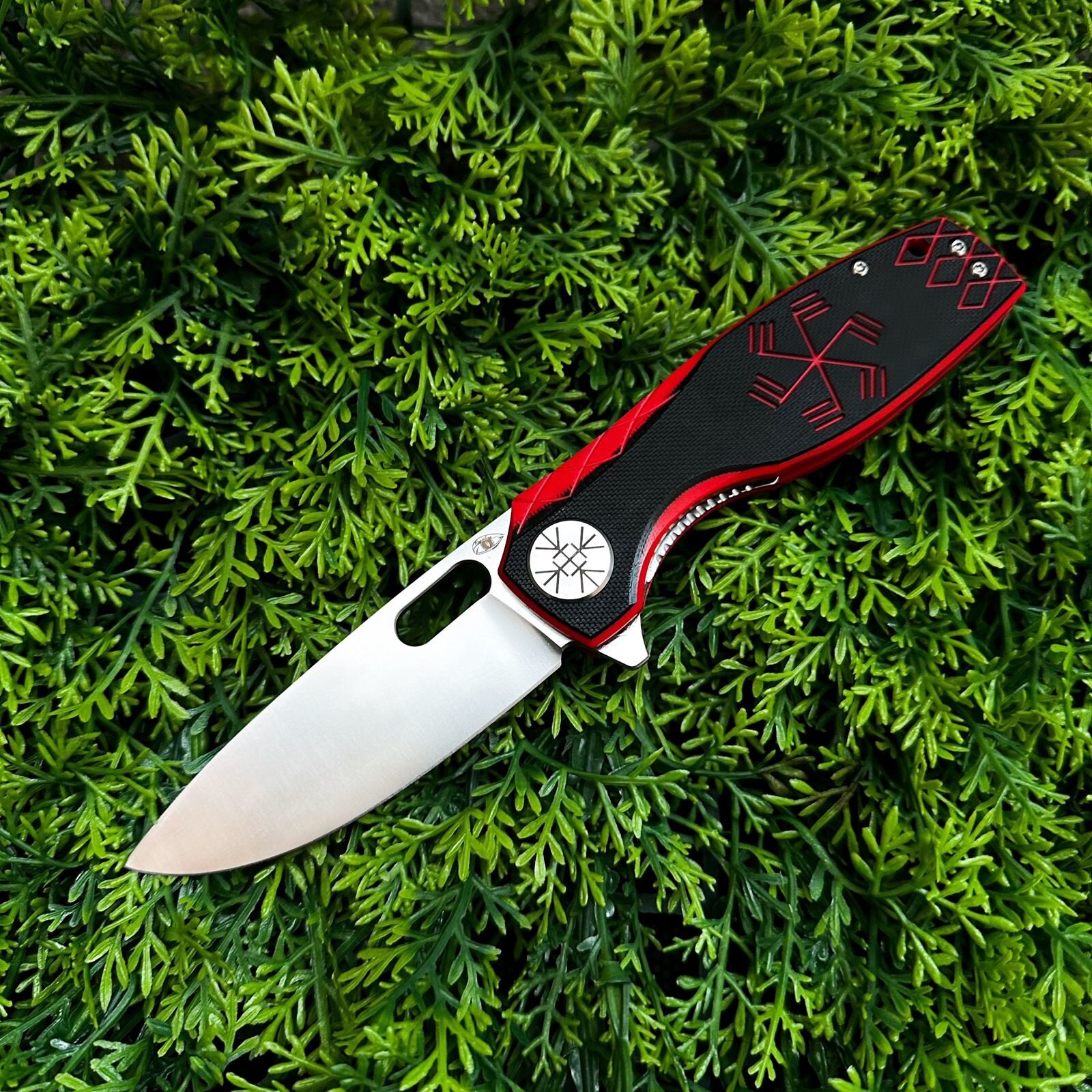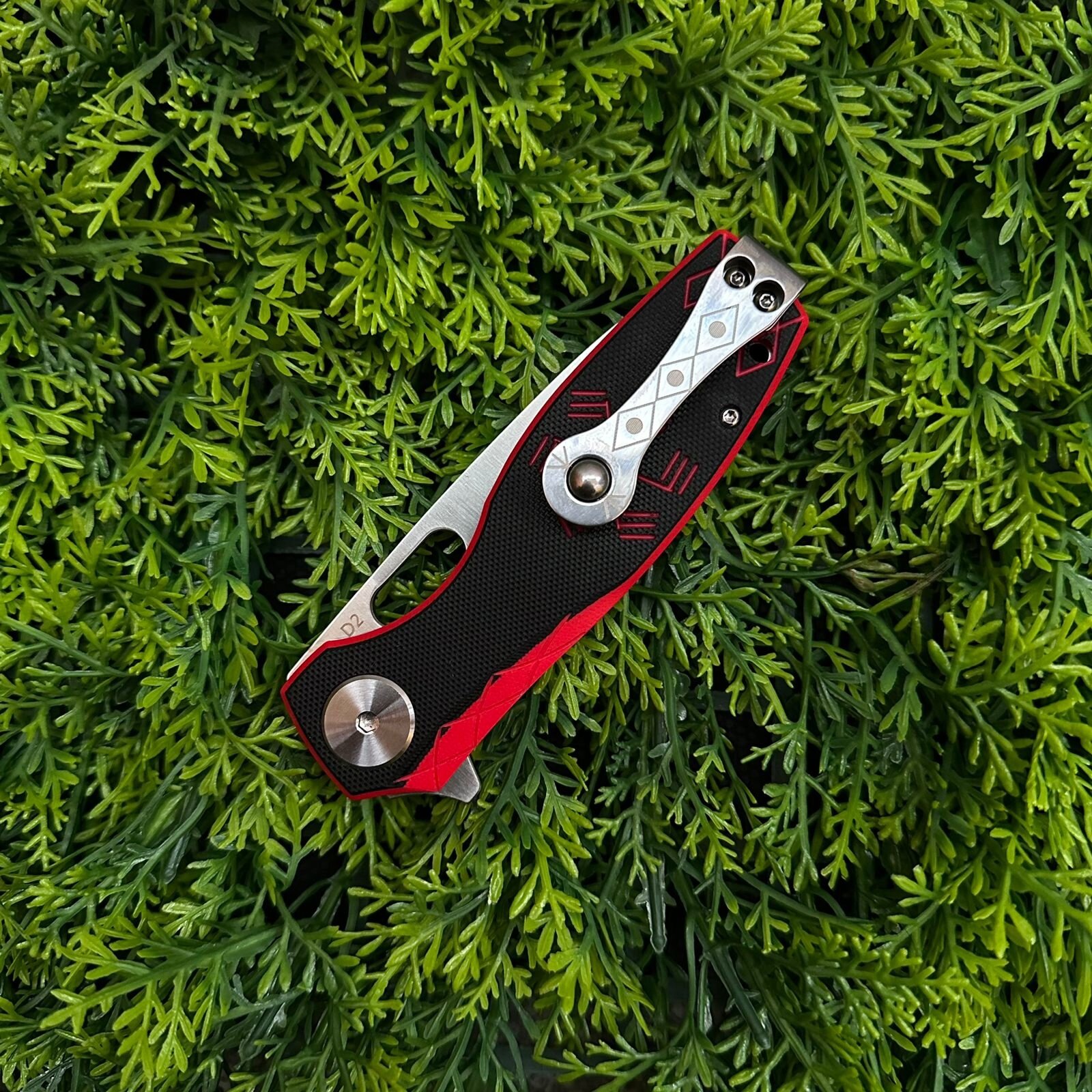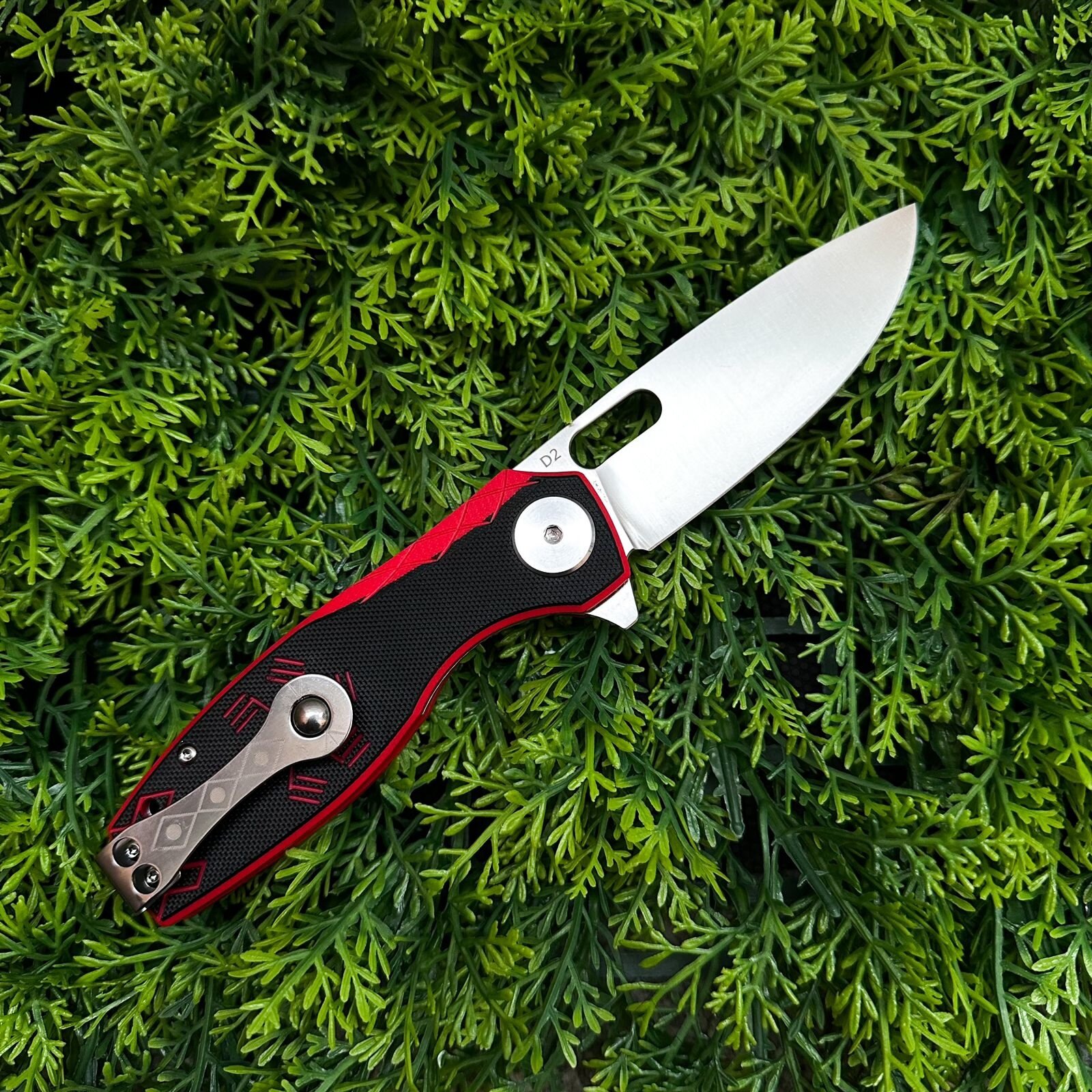 Марка стали: D2 Твёрдость: HRC60-61 Длина общая: 201мм Длина клинка: 87мм Ширина клинка наибольшая: 30мм Толщина обуха: 3мм Вес: 140гр Материал рукояти: G10 Механизм открытия: подшипник Производитель: Reptilian