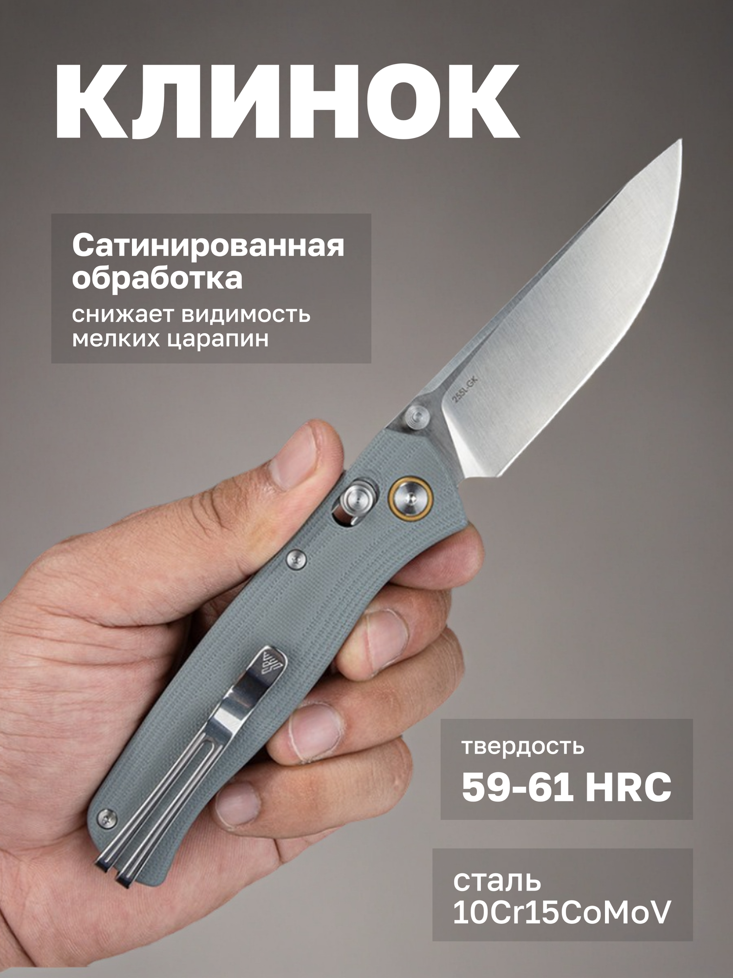 Складной нож SRM 255L-GK - это надежный и удобный инструмент для повседневного использования. Он имеет прочную и надежную конструкцию, которая обеспечивает безопасность при работе с ним. Этот нож имеет удобную рукоять из стеклотекстолита G10, которая не скользит в руке и обеспечивает надежный хват. Клинок ножа выполнен из нержавеющей стали 10Cr15CoMoV, которая отличается высокой прочностью и устойчивостью к коррозии. Заточка клинка прямая, что позволяет легко резать различные материалы. Одной из главных особенностей этого ножа является возможность использования его одной рукой, что делает его идеальным выбором для тех, кто ищет компактный и удобный нож. Кроме того, на ноже есть переставляемая клипса для крепления на кармане, что позволяет быстро и удобно достать нож в нужный момент. SRM Knives - это известный бренд, который зарекомендовал себя на рынке как производитель качественных и надежных ножей. Этот складной нож SRM 255L-GK является одним из лучших представителей их линейки. Он оснащен надежным замком Axis Lock, который обеспечивает безопасность и удобство использования. Этот нож идеально подходит для любителей активного отдыха, таких как, рыбалка или туризм. Он также может быть использован в качестве EDC (Every Day Carry) ножа, который всегда будет под рукой в нужный момент. В целом, складной нож SRM 255L-GK - это отличный выбор для тех, кто ищет надежный и удобный нож для повседневного использования или активного отдыха. Он обладает множеством преимуществ и характеристик, которые делают его одним из лучших на рынке. Не является холодным оружием на территории РФ.