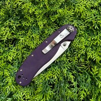 Рукоять ножа выполнена из стеклотекстолита G10, который отличается высокой прочностью и устойчивостью к воздействию влаги. Фиолетовый цвет рукояти придает ножу стильный и современный вид.