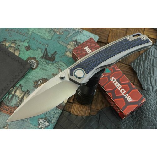 Клинок имеет почти кинжальную форму (Spear Point). Небольшое фальшлезвие облегчает укол, спуски почти от обуха гарантируют эффективность реза, а дулька облегчает процесс заточки. Клинок сделан из японской стали VG-10. Это коррозионностойкая высокоуглеродистая сталь разработанная специально для ножевой индустрии. Она обладает хорошей ударной прочностью, высокой износостойкостью и длительным удержанием остроты режущей кромки. Финиш клинка — сатинирование (рисунок направленной шлифовки), один из самых популярных и практичных способов обработки поверхности.