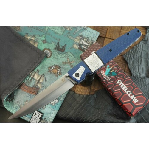Нож открывается за всем привычные симметричные шпеньки. Осевой узел выполнен на подшипниках, механика прекрасная. У ножа лайнеры закрыты накладками из стеклотекстолита G-10 — популярнейшего композита, используемого во всём мире для изготовления прочных и ударостойких рукоятей. Замок — классический Liner Lock, проверенный временем и интуитивно понятный.