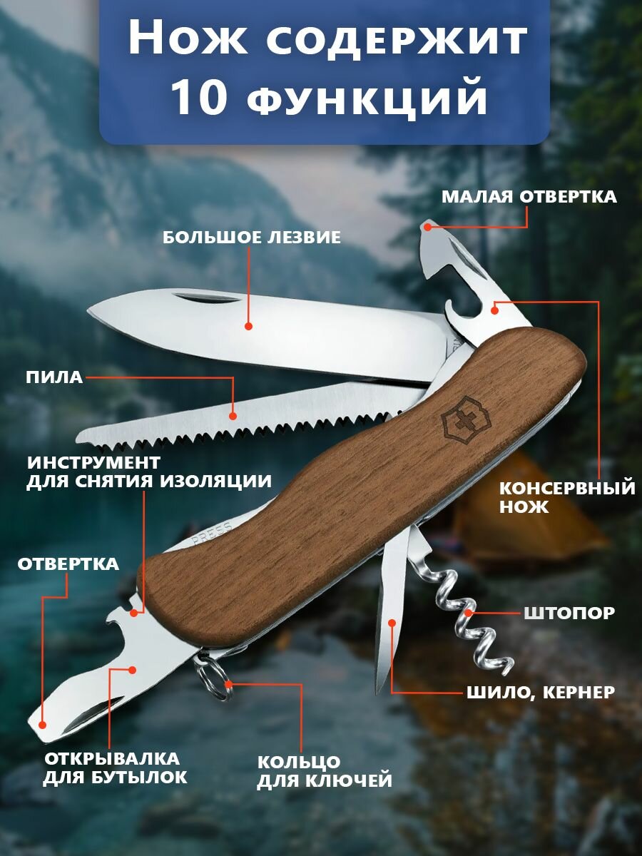 Складной нож туристический Victorinox Forester, 111 мм, 10 функций, с фиксатором лезвия, деревянный 0.8361.63: сравнение цен, характеристики, фото, актуальное наличие и цены.