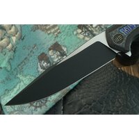 Профиль клинка - модернизированный Дроп Поинт. Это одна из самых востребованных и сбалансированных форм. Высокие спуски гарантируют «вкусный» рез. Выполнен клинок в порошковой премиум-стали CPM 20CV с агрессивным резом и высокой ударной вязкостью для работы в экстремальных условиях. На серийных ножах CPM 20CV встречается не так уж и часто. Финиш клинка комбинированный — satin/black stonewashed, и выглядит это очень эффектно.