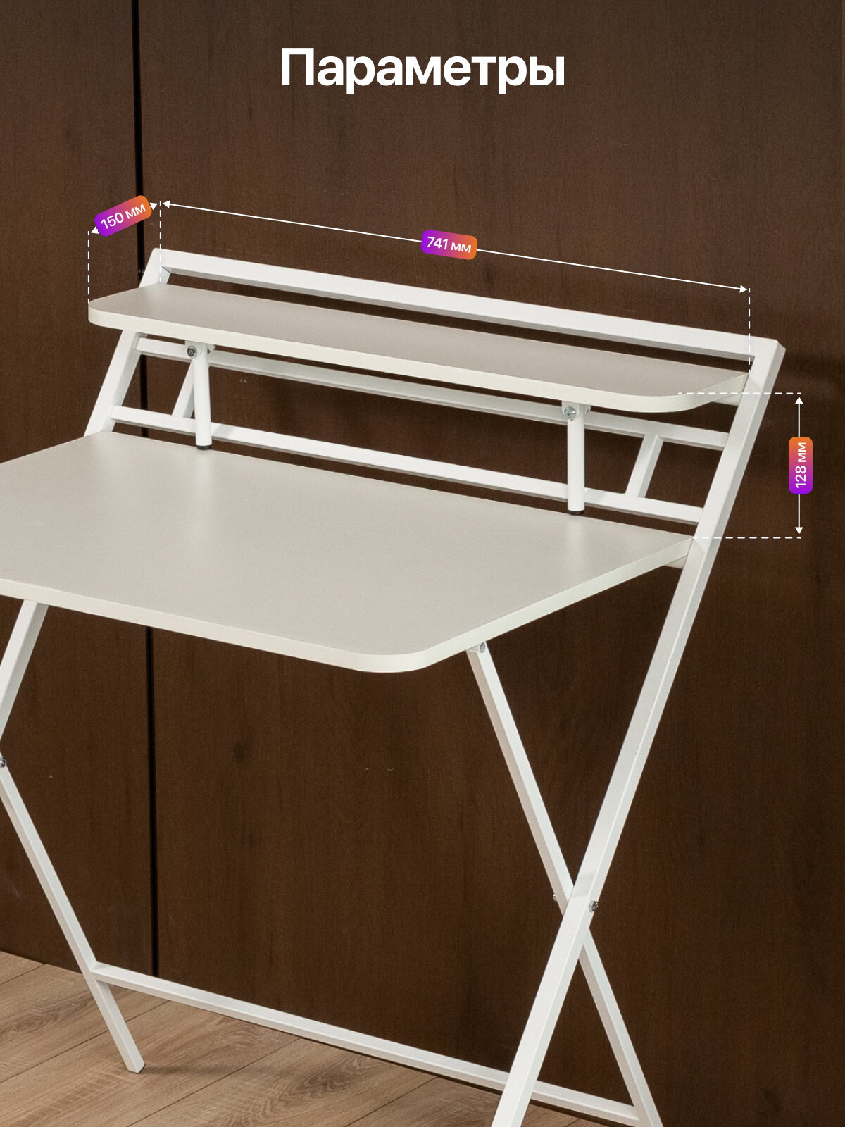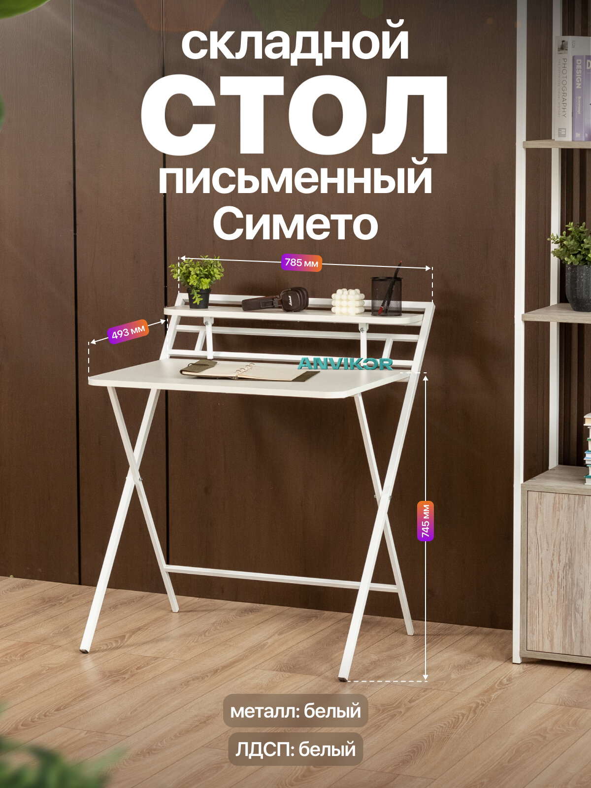 Складной письменный стол с полкой в стиле лофт Симето белый/белый: сравнение цен, характеристики, фото, актуальное наличие и цены.