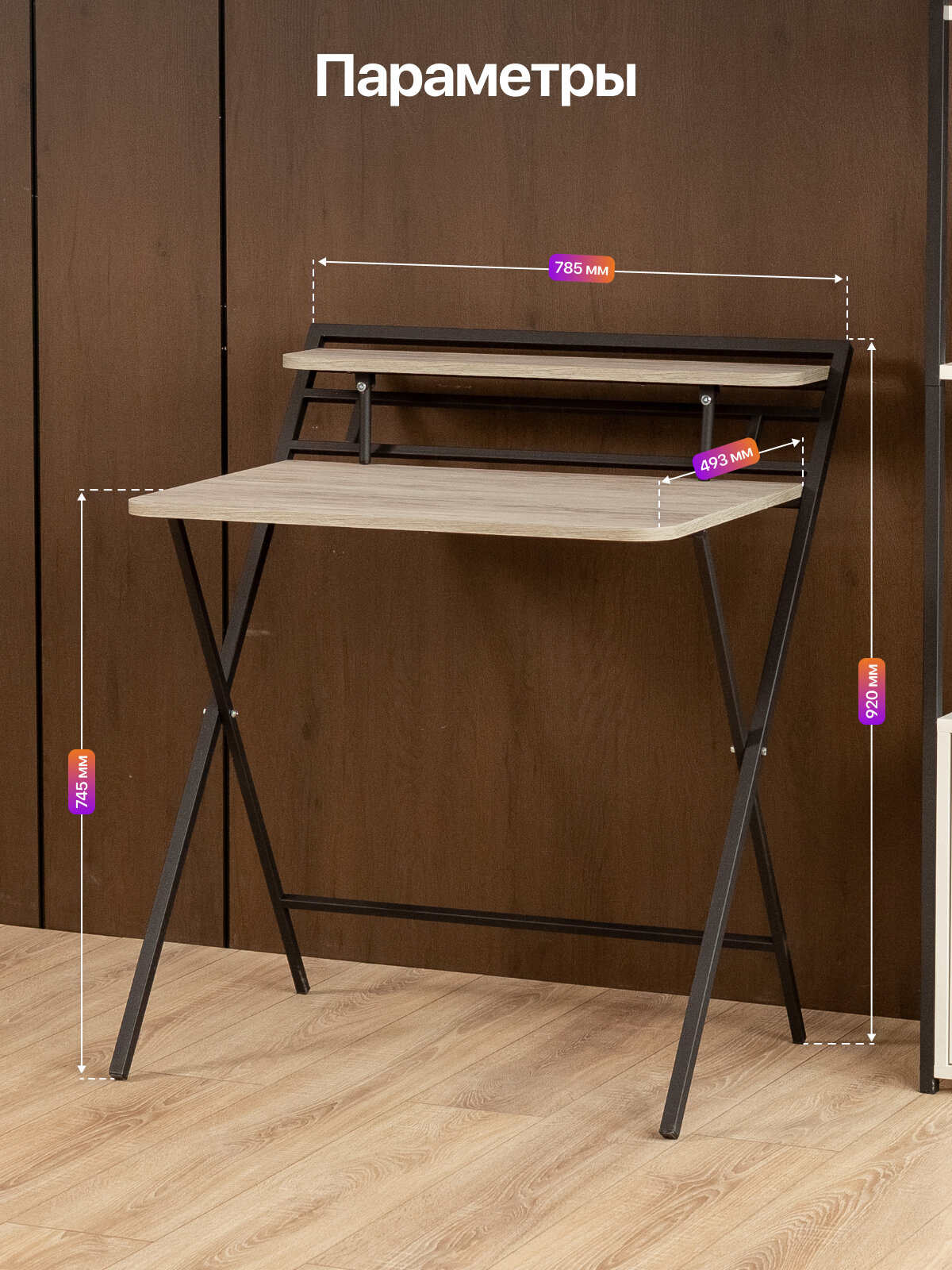 Складной письменный стол с полкой в стиле лофт Симето черный/серый: сравнение цен, характеристики, фото, актуальное наличие и цены.