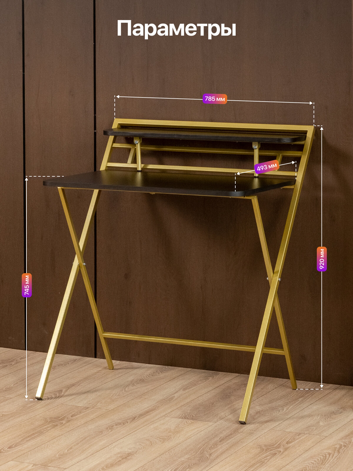 Складной письменный стол с полкой в стиле лофт Симето золотой/черный: сравнение цен, характеристики, фото, актуальное наличие и цены.