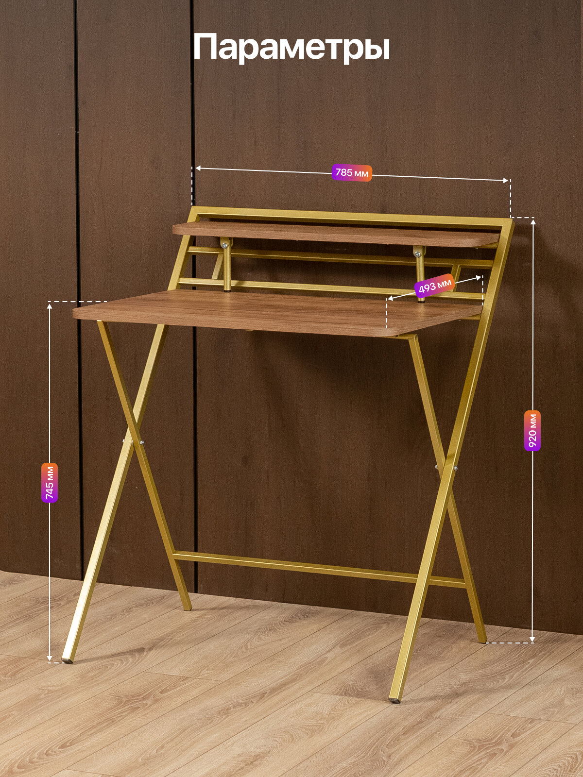 Складной письменный стол с полкой в стиле лофт Симето золотой/коричневый: сравнение цен, характеристики, фото, актуальное наличие и цены.