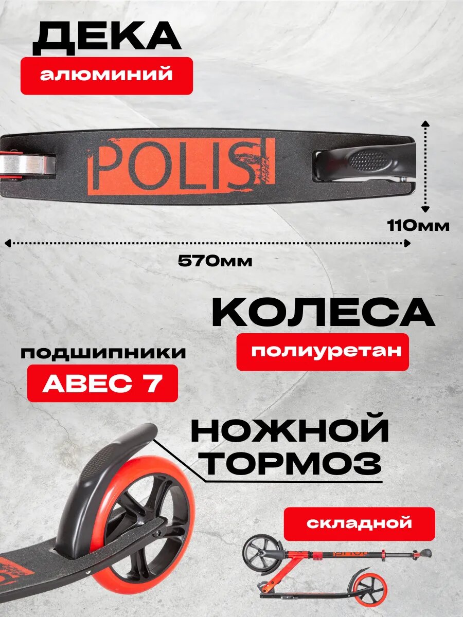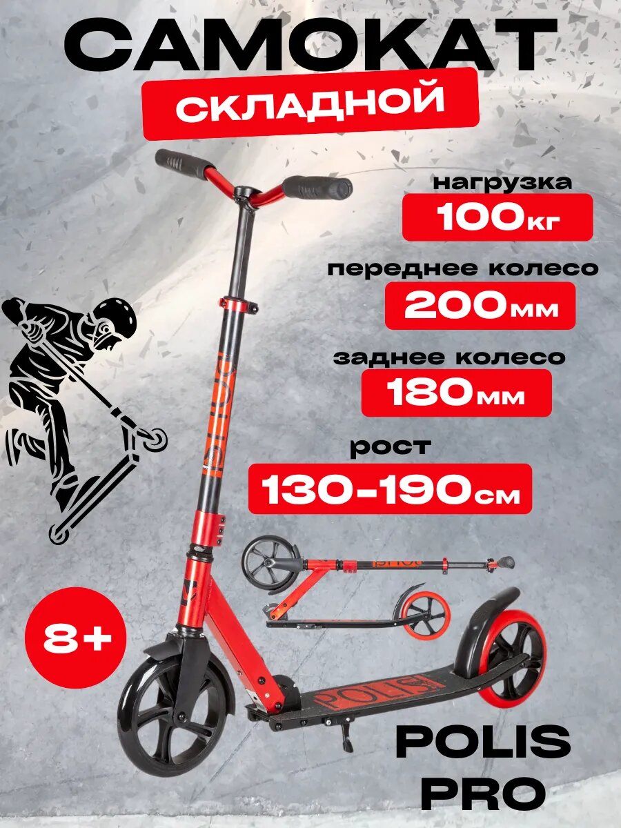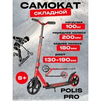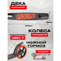 Самокат Novatrack "Polis Pro", городской, складной, алюминиевый, ABEC 7, 200мм, от 8 лет