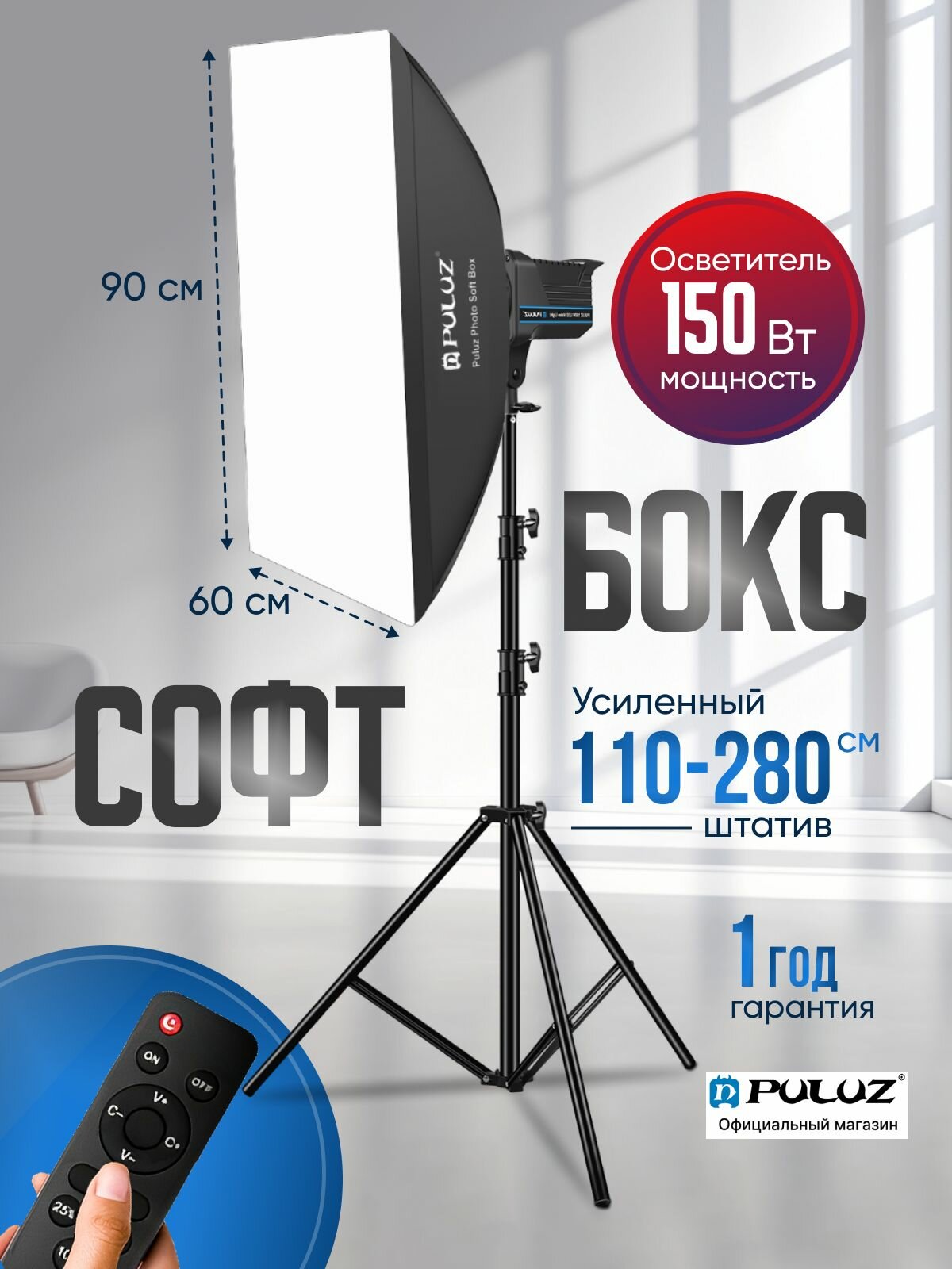 1. Профессиональный, 4-полюсной 90х60 см. софтбокс.