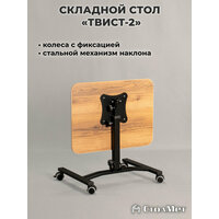 Складной стол для ноутбука на колесах «Твист-2» с регулировкой высоты и угла наклона, дуб делано, черный