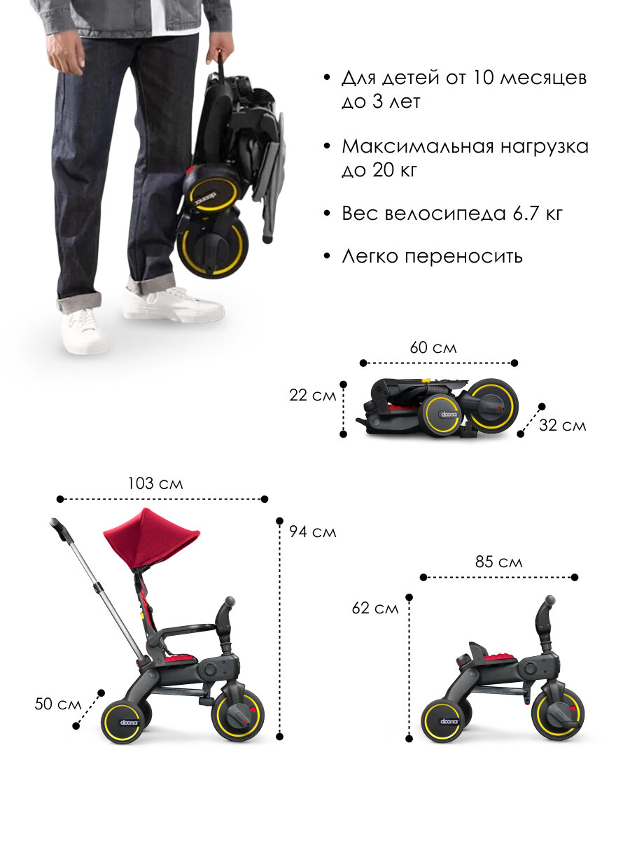 Складной трехколесный детский велосипед — коляска с родительской ручкой Doona Liki Trike S1, цвет: Flame Red: сравнение цен, характеристики, фото, актуальное наличие и цены.