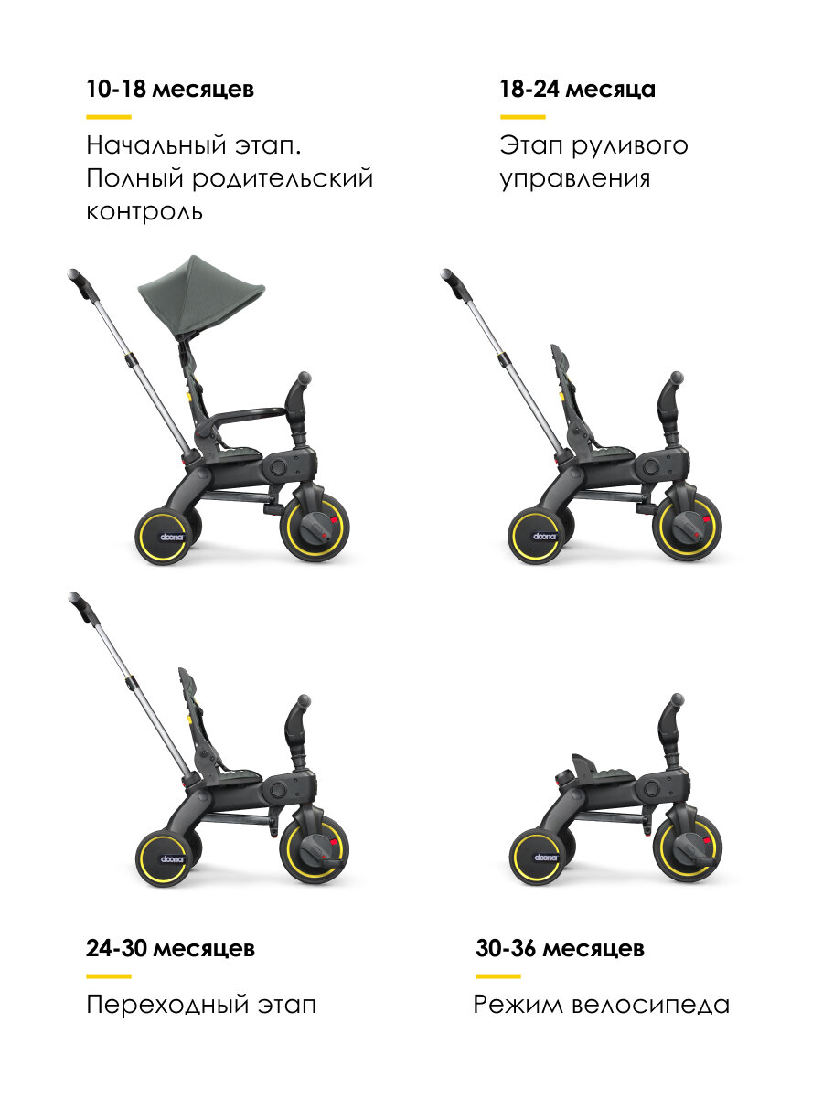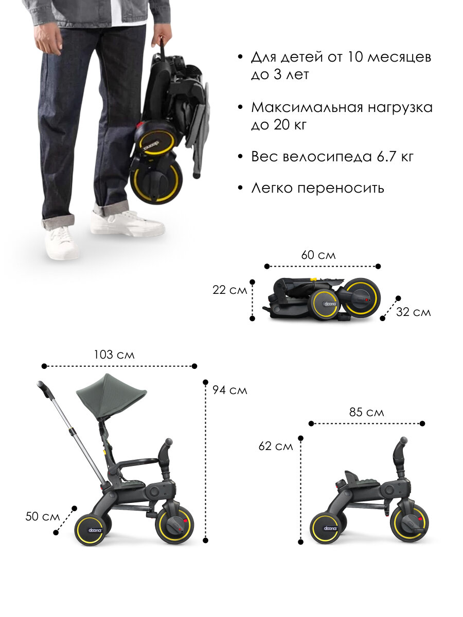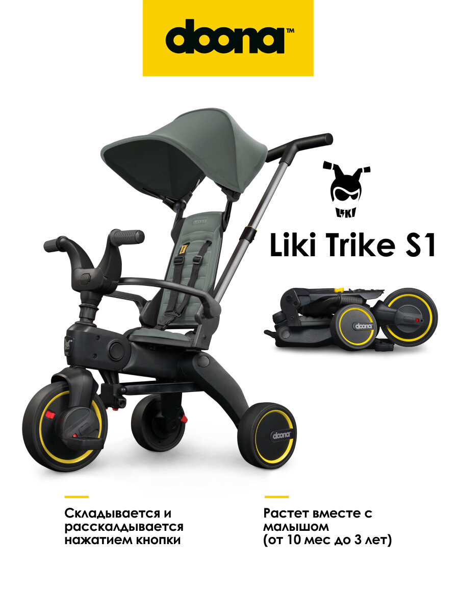 Складной трехколесный детский велосипед — коляска с родительской ручкой Doona Liki Trike S1, цвет: Slate Green: сравнение цен, характеристики, фото, актуальное наличие и цены.