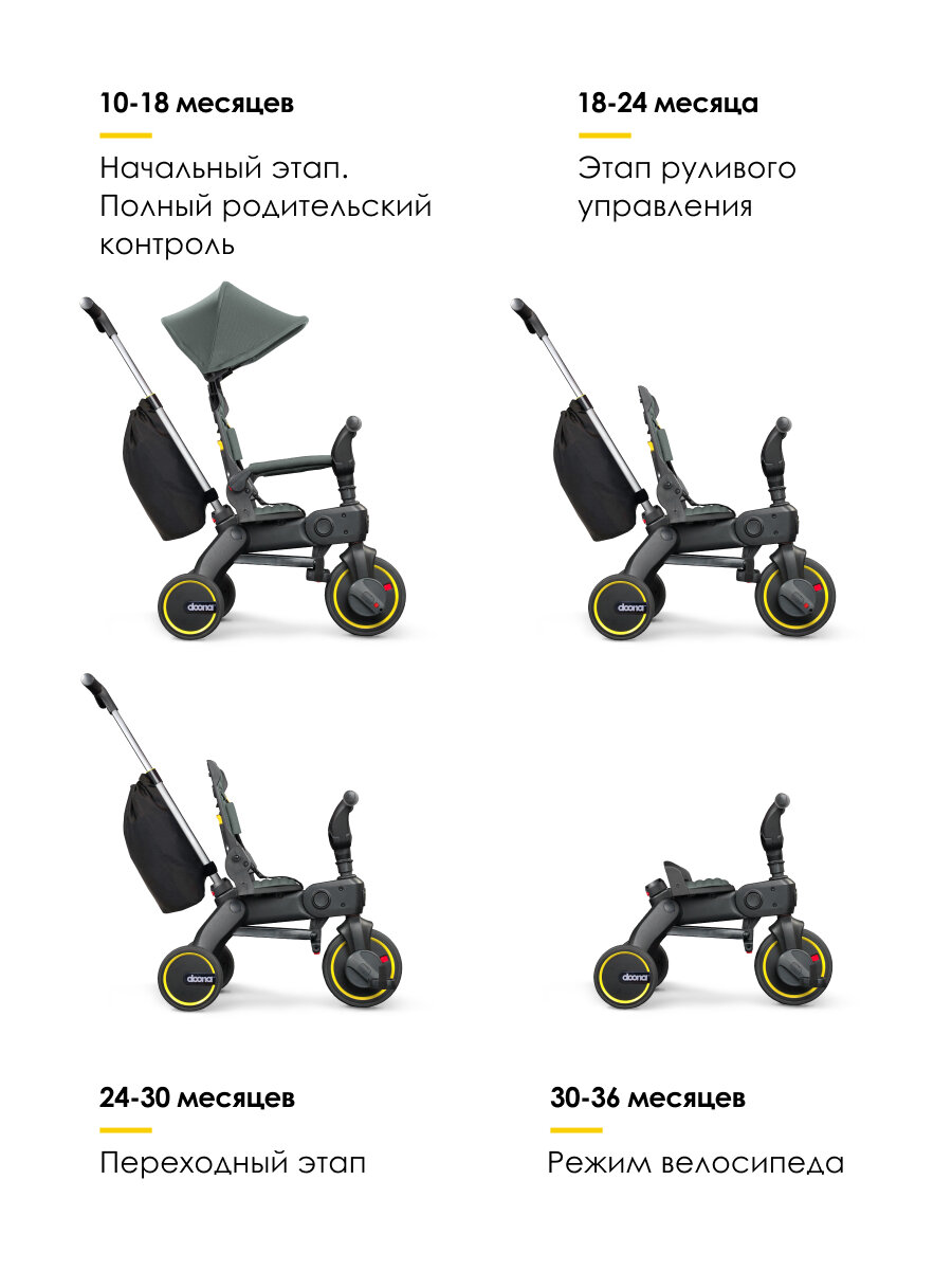 Складной трехколесный детский велосипед — коляска с родительской ручкой Doona Liki Trike S3, цвет: Slate Green: сравнение цен, характеристики, фото, актуальное наличие и цены.