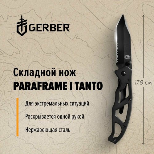 Складной туристический нож Gerber Paraframe I Tanto 31-003628 с серрейтором, нержавеющая сталь: сравнение цен, характеристики, фото, актуальное наличие и цены.