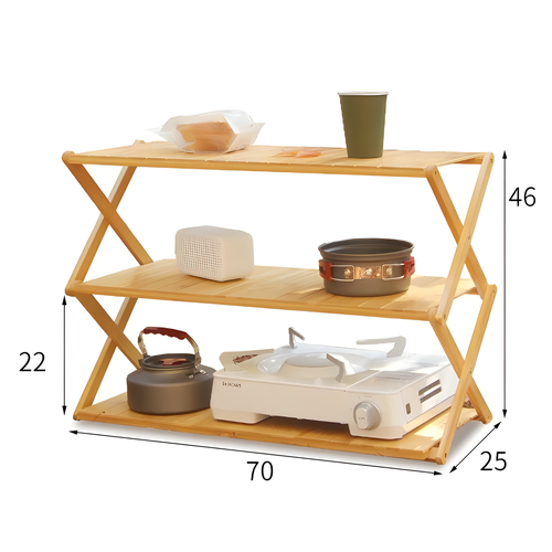 Складной туристический стеллаж из бамбука, 3 полки, натуральный, 46х70 см