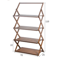 Складной туристический стеллаж из бамбука, 4 полки и перекладина, ореховый, 110х70 см