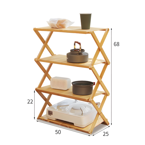 Складной туристический стеллаж из бамбука, 4 полки, натуральный, 68х50 см