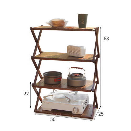 Складной туристический стеллаж из бамбука, 4 полки, ореховый, 68х50 см