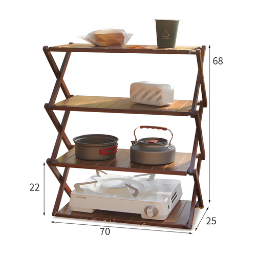 Складной туристический стеллаж из бамбука, 4 полки, ореховый, 68х70 см