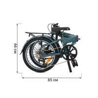 | Особенности | размер в сложенном виде 85×35×66 см; педали: складные, ударопрочный пластик; уровень манеток: начальный; уровень каретки: прогулочный; тип привода: цепной; уровень заднего тормоза: прогулочный; уровень переднего тормоза: прогулочный; крепления дискового тормоза: вилка, рама, втулка; рулевая колонка: безрезьбовая; уровень заднего переключателя: начальный; уровень кассеты: начальный; комплектация: подножка, багажник, звонок, крылья |