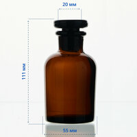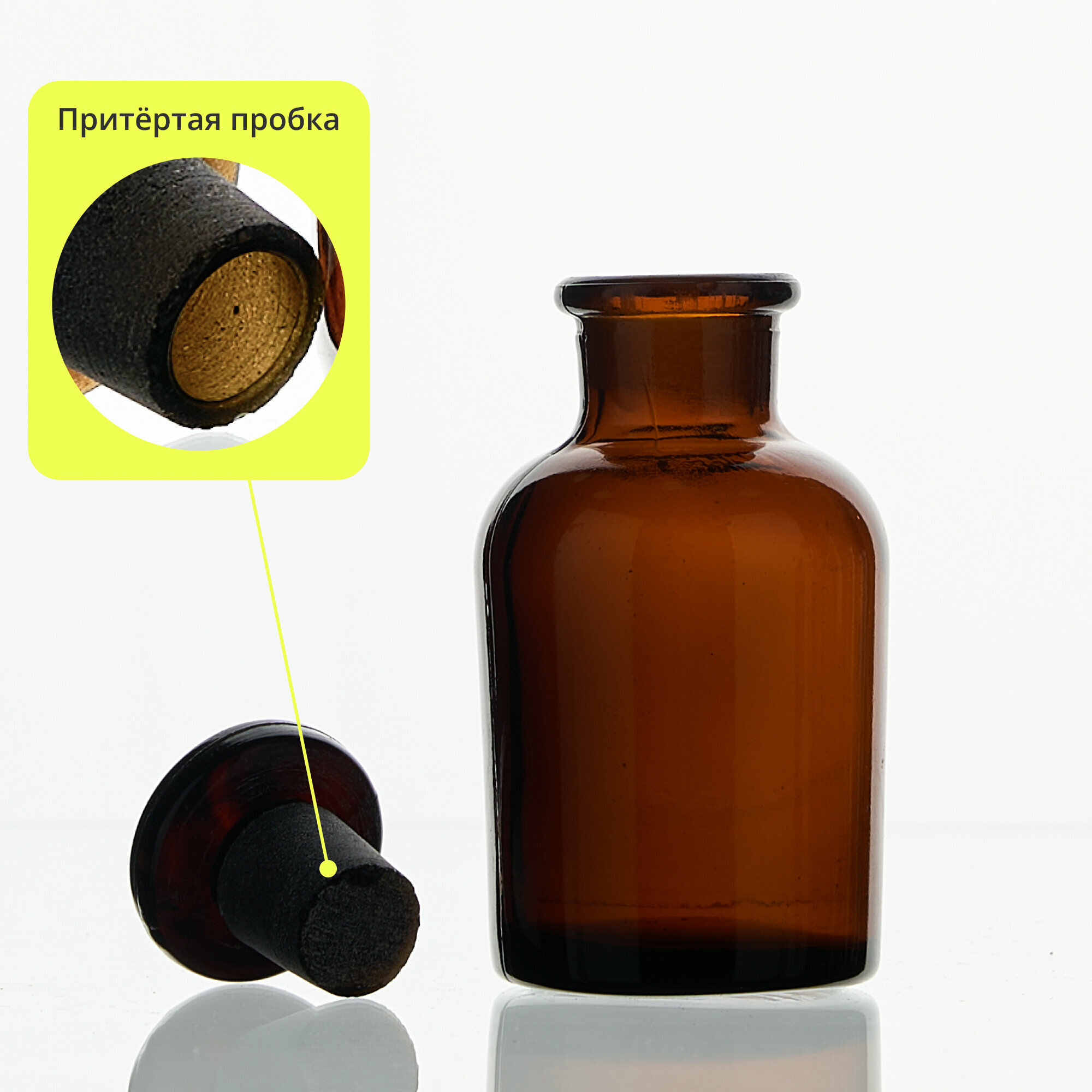 Особенностью склянки является узкая горловина и притертая пробка, что обеспечивает герметичное закрытие и предотвращает утечку реактивов. Внутренний диаметр горловины составляет 22 ± 4,0 мм, что позволяет удобно наливать и переливать реактивы.