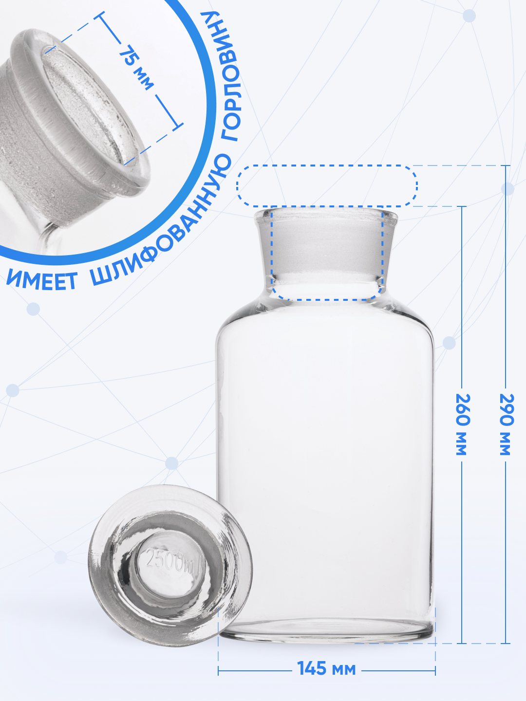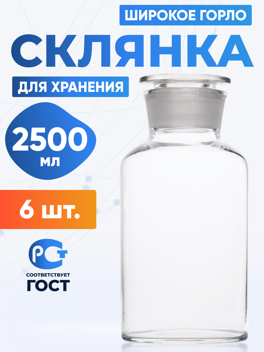 Склянка (штанглас) 2500 мл (6 шт) из светлого стекла с широкой горловиной и притертой пробкой для реактивов ССШ-2500: сравнение цен, характеристики, фото, актуальное наличие и цены.