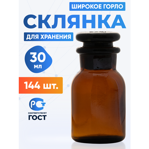 Склянка (штанглас) 30 мл (144 шт) из темного стекла с широкой горловиной и притертой пробкой для реактивов СТШ-30: сравнение цен, характеристики, фото, актуальное наличие и цены.