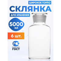 Склянка (штанглас) 5000 мл (6 шт) из светлого стекла с широкой горловиной и притертой пробкой для реактивов ССШ-5000: сравнение цен, характеристики, фото, актуальное наличие и цены.
