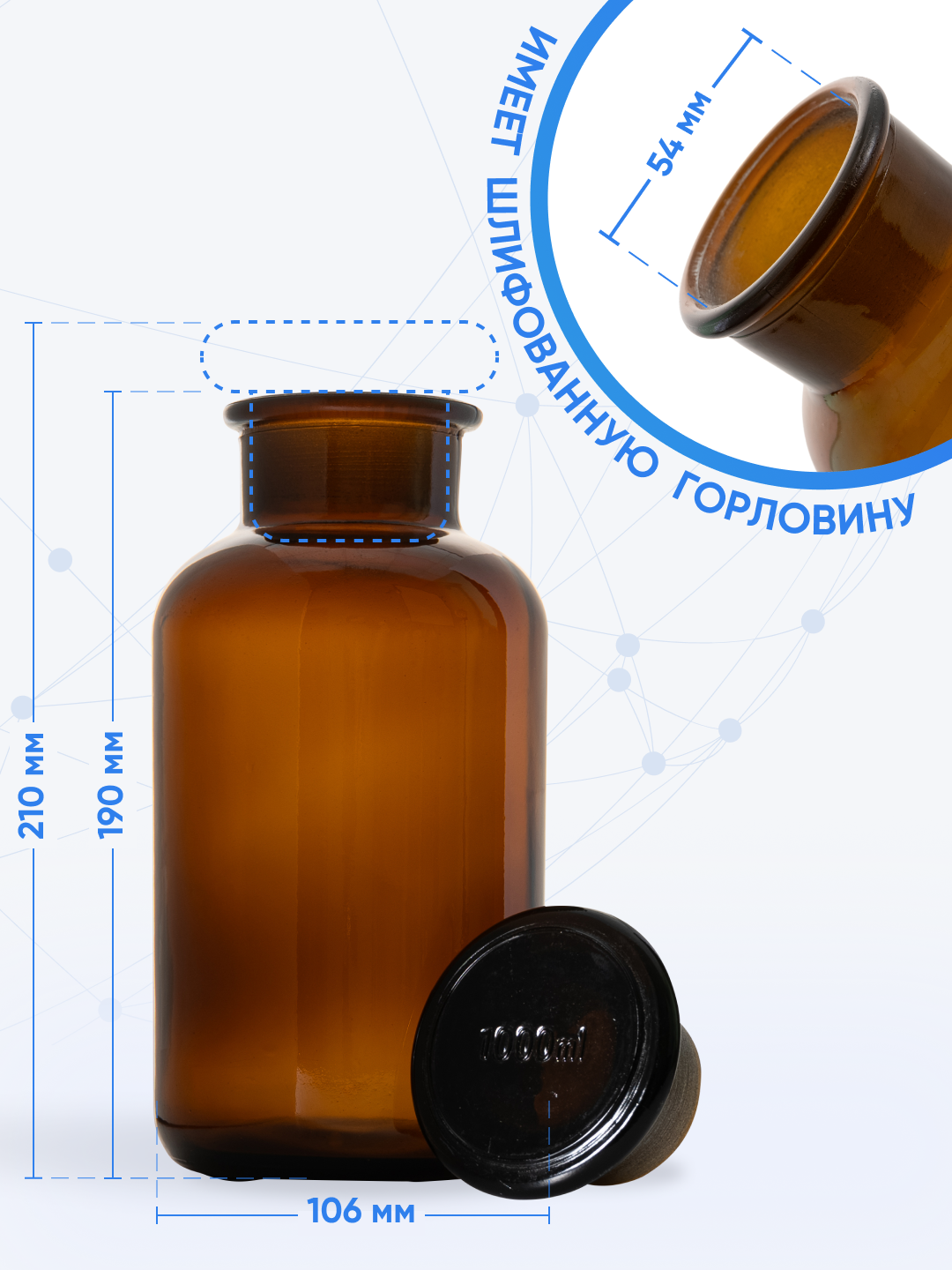Склянка-ваза 1000 мл из темного стекла с широкой горловиной и притертой пробкой СТШ-1000: сравнение цен, характеристики, фото, актуальное наличие и цены.