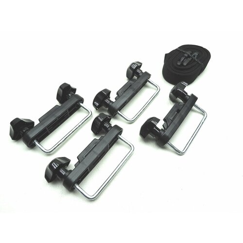 Скобы с площадками крепления автобокса ED Magnum Joker к поперечинам. Крепление автобокса скобами к поперечинам является самым доступным и одновременно самым надежным способом фиксации. Вы самостоятельно регулируете силу затягивания барашков, проверить надежность фиксации тоже очень просто. В комплекте 4 скобы, 8 барашков, дистанционные площадки и ремни фиксации груза.