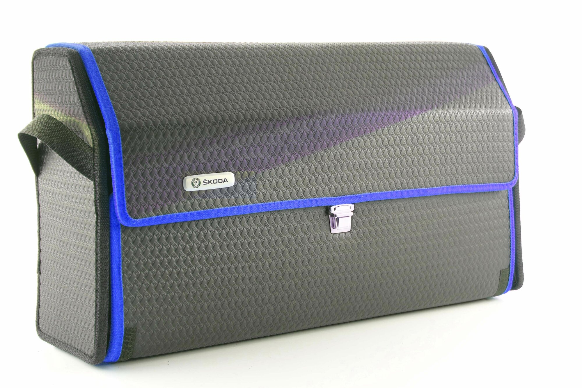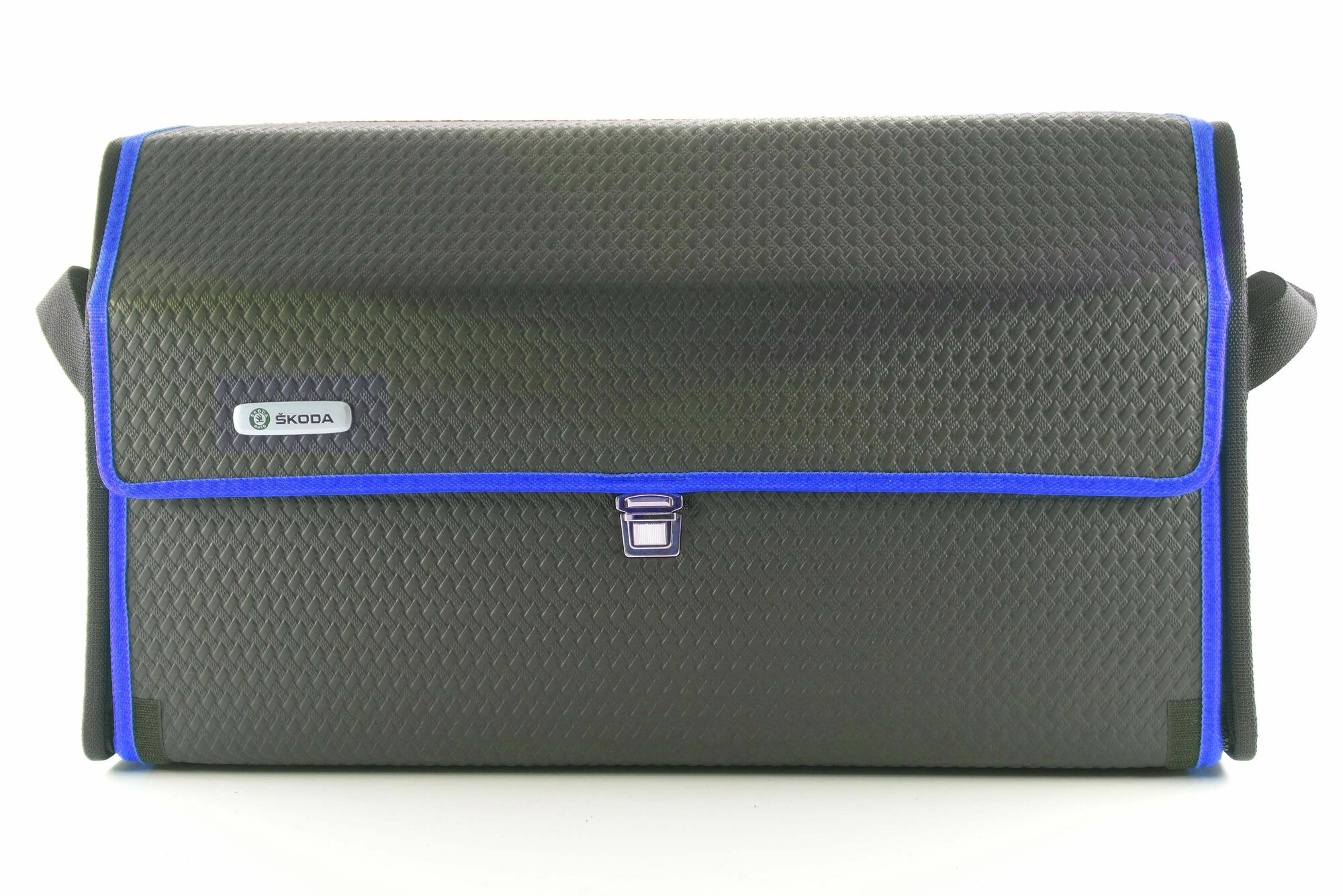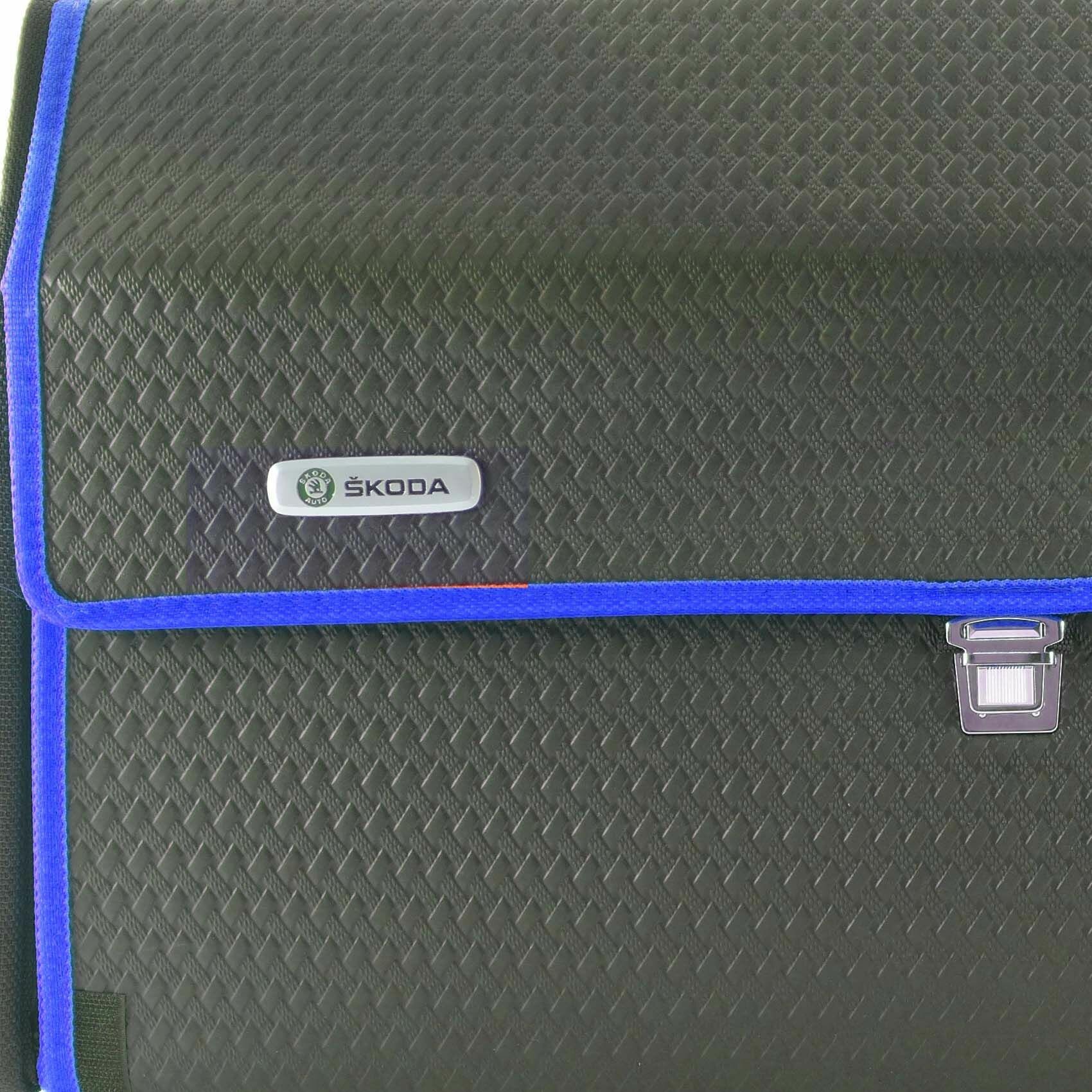 Купить SKODA Органайзер автомобильный в багажник, плетёное тиснение, Skoda 38L #черный, синий кант с доставкой по всей России.