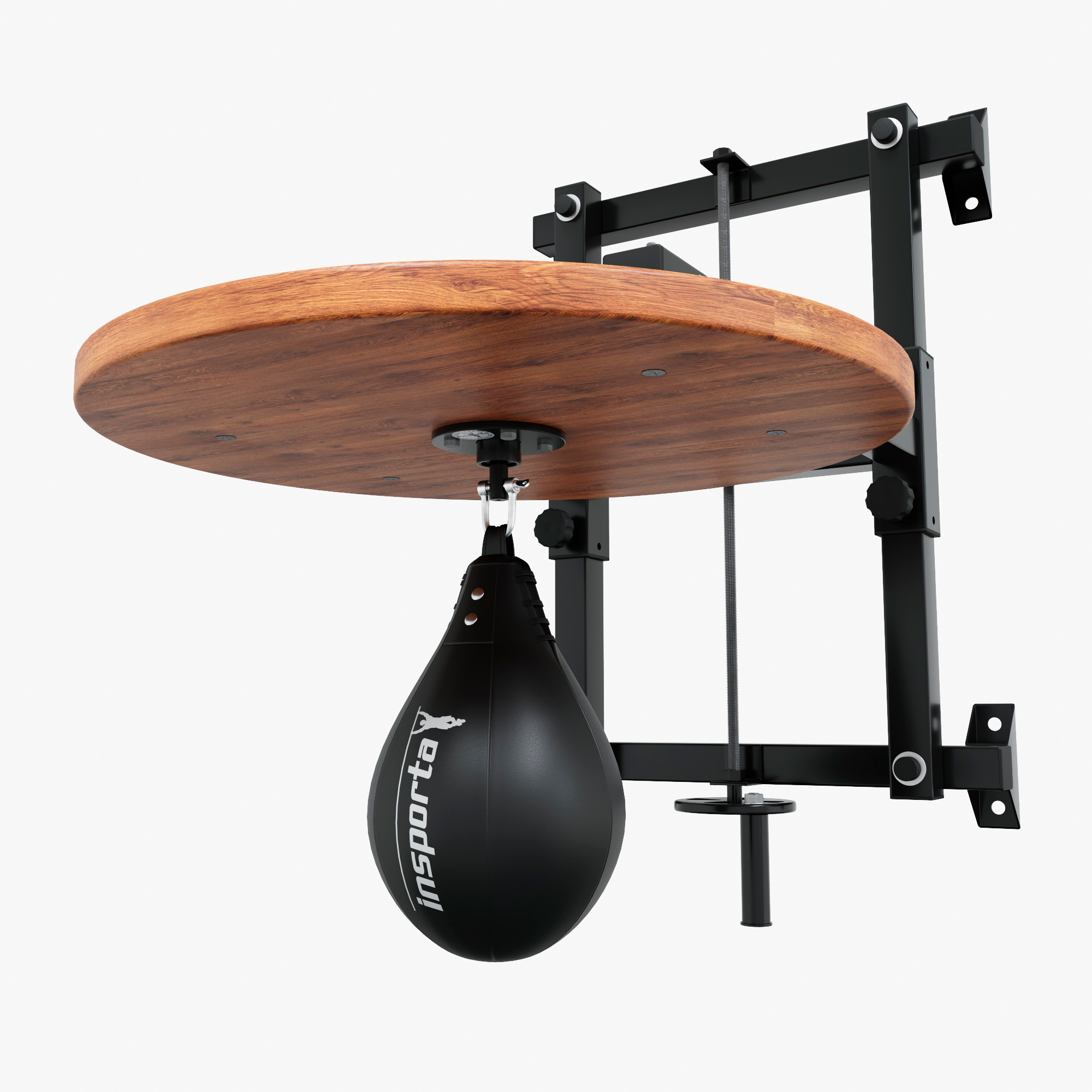 Платформа для скоростной груши INSPORTA FS-4 изготовлена из разборного металлокаркаса, отражателя, вертлюга и пневмогруши.