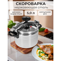 Купить Скороварка из нержавеющей стали, 5л, подходит для индукционных и газовых плит с доставкой по всей России.