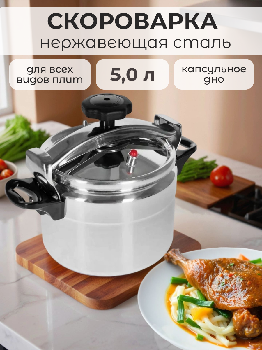Скороварка из нержавеющей стали, 5л, подходит для индукционных и газовых плит: сравнение цен, характеристики, фото, актуальное наличие и цены.