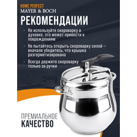 1. Сокращение времени приготовления: процесс происходит под повышенным давлением, что позволяет готовить быстрее и эффективнее. 2. Сохранение первоначального количества жидкости: приготовление в скороварке позволяет сохранить первоначальное количество воды или жидкости, что важно для приготовления некоторых блюд. 3. Практичность и функциональность: скороварка легко моется в посудомоечной машине и подходит для всех типов плит, включая индукционную. 4. Стильный дизайн: скороварка Home Perfect имеет современный дизайн и легко впишется в любой интерьер кухни. 5. Отличный подарок: скороварка станет прекрасным подарком для любой хозяйки, особенно для тех, кто следит за своим здоровьем или придерживается диетического питания.