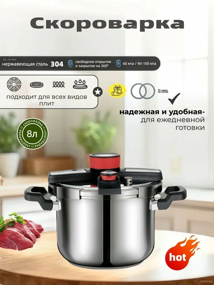 Скороварка «KT80», Нержавеющая сталь, 8 л: сравнение цен, характеристики, фото, актуальное наличие и цены.