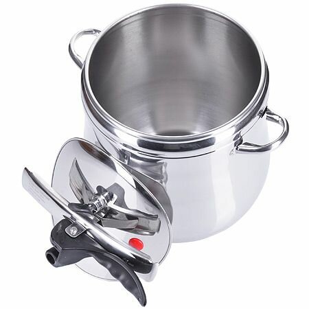 Скороварка из высококачественной нержавеющей стали, объем 15 литров. Скороварка оснащена толстым капсульным дном и клапаном контроля давления. Время приготовления значительно сокращается, так как процесс происходит при повышенном давлении. При приготовлении пищи в скороварке сохраняется первоначальное количество жидкости - не происходит выпаривания. Скороварка имеет герметично закрывающуюся крышку, благодаря которой пар выходит наружу только через клапан, поддерживающий повышенные давление и температуру внутри скороварки, практически не позволяет запаху распространяться. Скороварка подходит для индукционных плит.Заполнять скороварку можно только на 2/3 общего объема. Объем изделий производитель указывает до края. Полезный объем будет меньше.