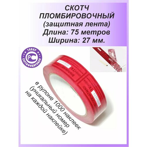 Купить Скотч пломбировочный 27мм х 75м красный с доставкой по всей России. Скотч пломбировочный 27мм х 75м красный: сравнение цен, характеристики, фото, актуальное наличие и цены.
